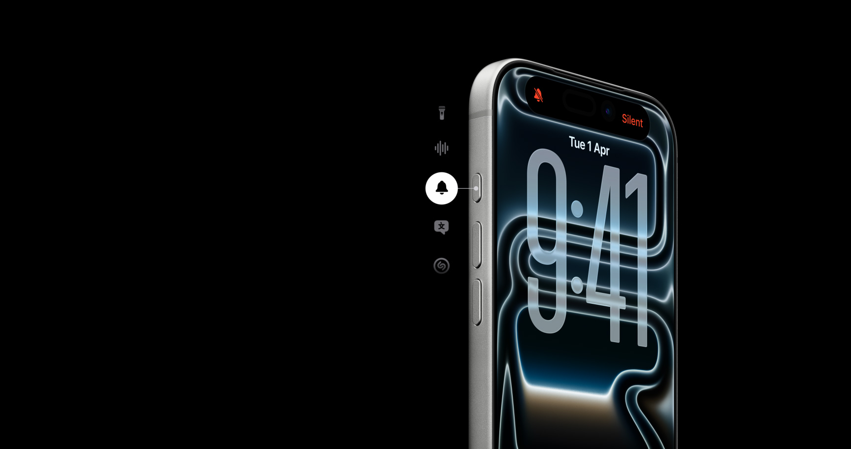 Action button. A customisable fast track to your favourite feature. Press and hold to launch the action you want — Silent mode, Translation, Shortcuts and more.