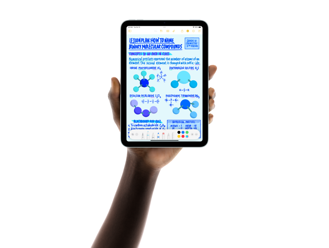 iPad mini has everything there is to love about iPad in a delightfully light, compact design. It features a 100 percent recycled aluminum enclosure and stunning all‑screen design, and it goes anywhere you go — fitting perfectly into a backpack or purse.