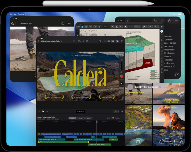 Tournez, montez et partagez vos vidéos depuis un même appareil doté d’un système caméra pro avec scanner LiDAR, de micros de qualité studio et de quatre haut‑parleurs. Filmez en ProRes 4K, enregistrez un podcast et choisissez le micro le plus adapté à chaque app grâce au sélecteur d’entrée.