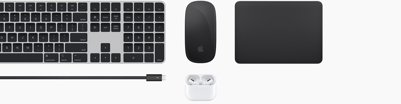 Sans fil, rechargeables, précis et confortables, les accessoires Magic sont désormais disponibles dans une version argent et noir. Parfaitement assortis au design du Studio Display, ils apportent la touche finale à votre installation.