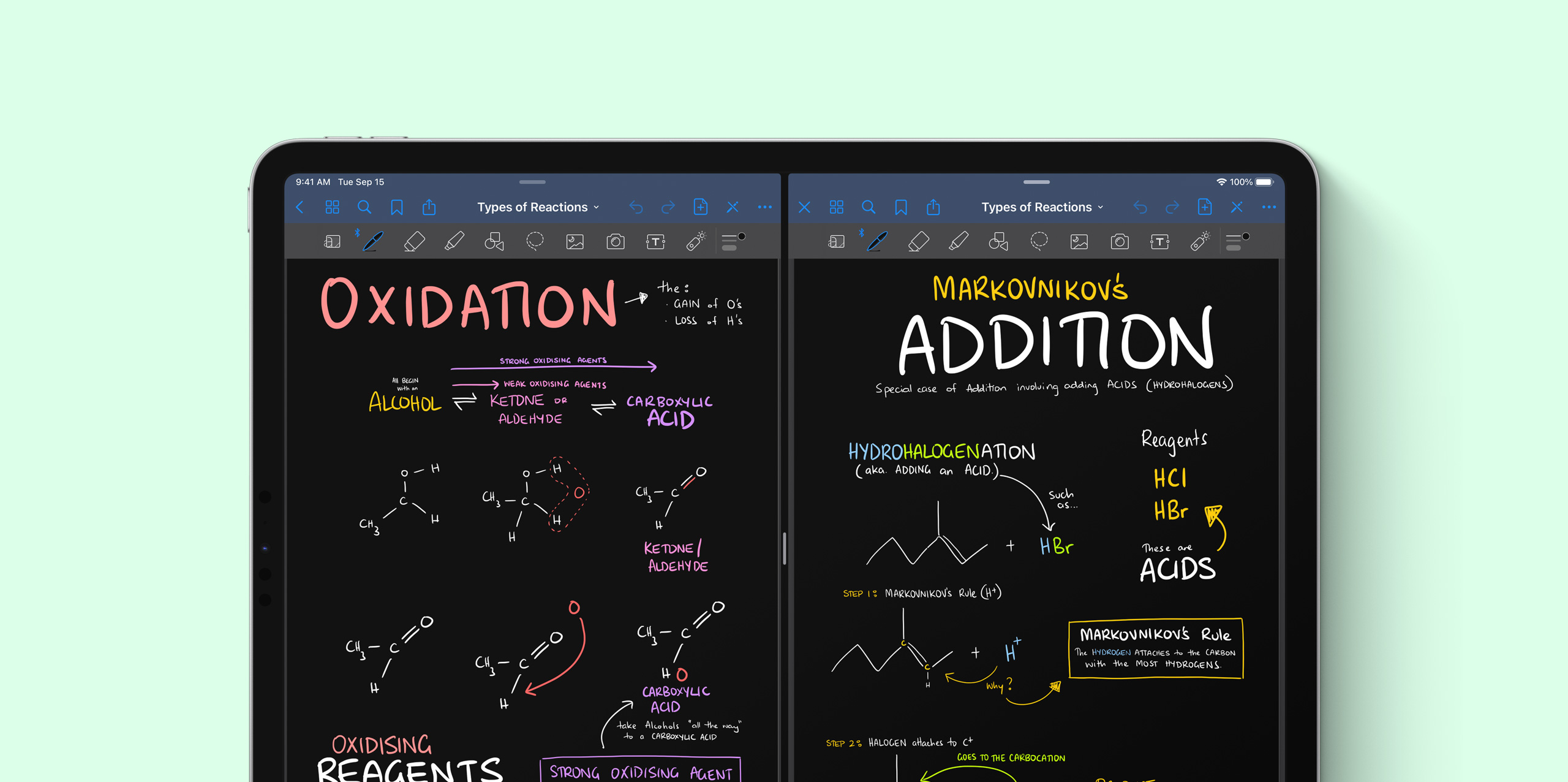 La versatilidad del iPad es ideal para el estilo de aprendizaje de Suresh, ya que trabaja en varias apps al mismo tiempo con Split View y usa el Apple Pencil para crear apuntes con diagramas detallados. Luego, con apps como GoodNotes, junta todo en increíbles guías de estudio personalizadas que lo ayudan a asimilar todo lo que está aprendiendo.