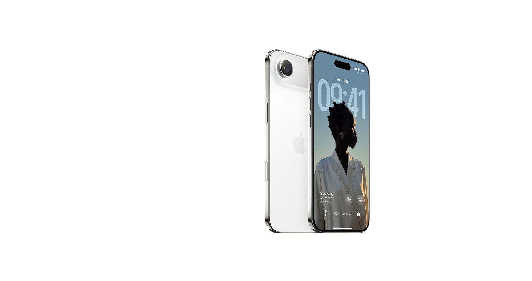 El iPhone Air es nuestro iPhone más delgado y tiene toda la potencia del chip A19 Pro. Es más resistente que cualquier iPhone anterior gracias a su marco de titanio pulido, el frente de Ceramic Shield 2 con resistencia a los rayones 3 veces mayor y la parte trasera de Ceramic Shield con resistencia a los golpes 4 veces mayor. Selfies grupales más inteligentes y video con Captura Dual con la nueva cámara frontal Center Stage. La cámara Fusion principal de 48 MP con teleobjetivo de 2x es compatible con las funcionalidades avanzadas más recientes, como los retratos de última generación. Pantalla Super Retina XDR envolvente de 6,5 pulgadas con ProMotion de hasta 120 Hz. Batería para todo el día. Prácticas herramientas de Apple Intelligence como Borrador y más.