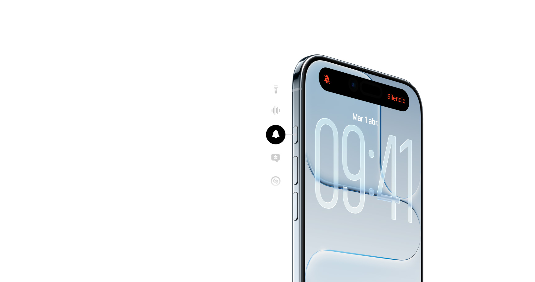 Botón de Acción. Un atajo personalizable a tu funcionalidad favorita. Mantenlo presionado para realizar diferentes acciones, como poner el dispositivo en silencio o traducir (sólo disponible en algunos idiomas).