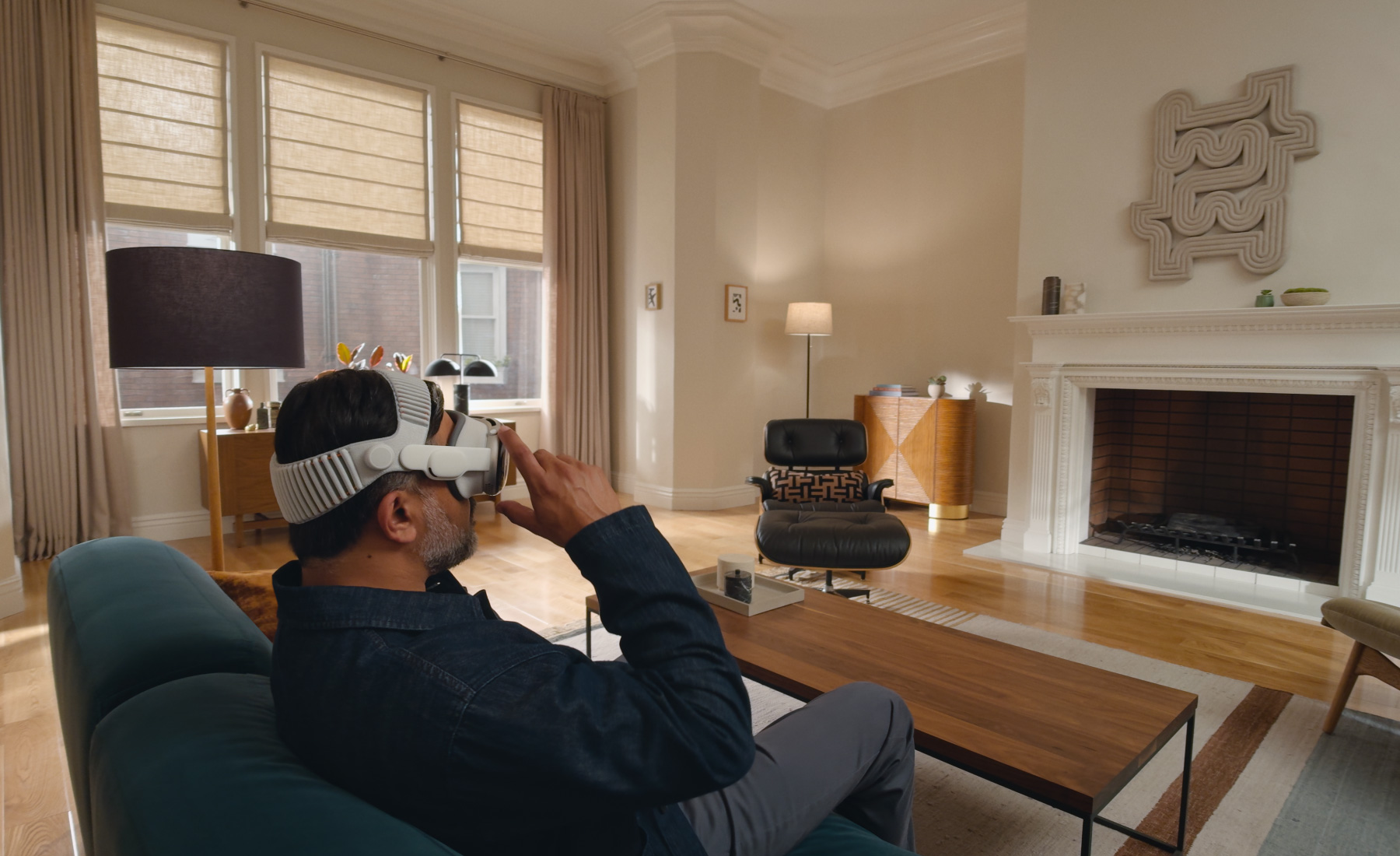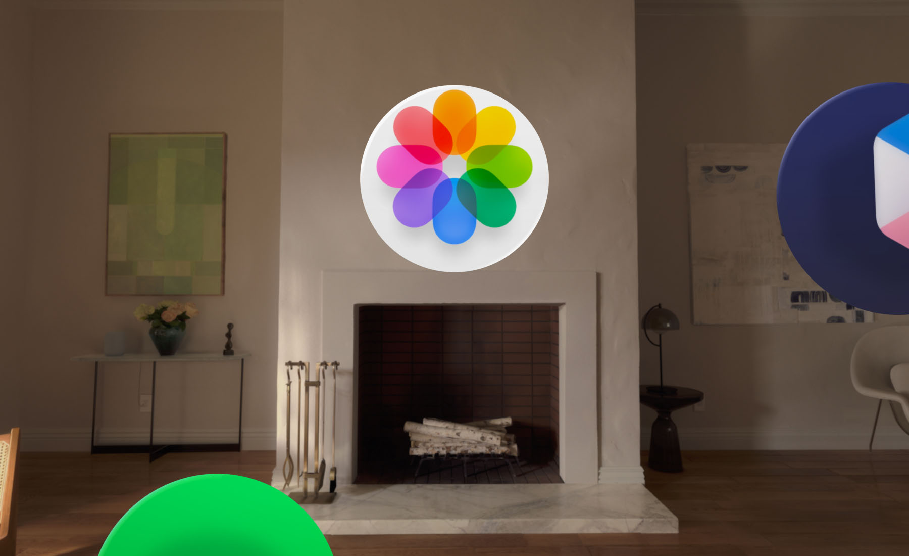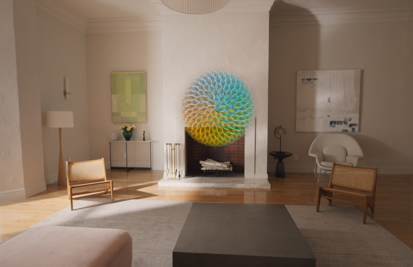 Dans visionOS, les apps peuvent remplir l’espace qui vous entoure, sans être limitées par le cadre d’un écran. Elles peuvent être déplacées à n’importe quel endroit, être ajustées à la taille idéale, réagir à l’éclairage de votre pièce et même projeter des ombres.