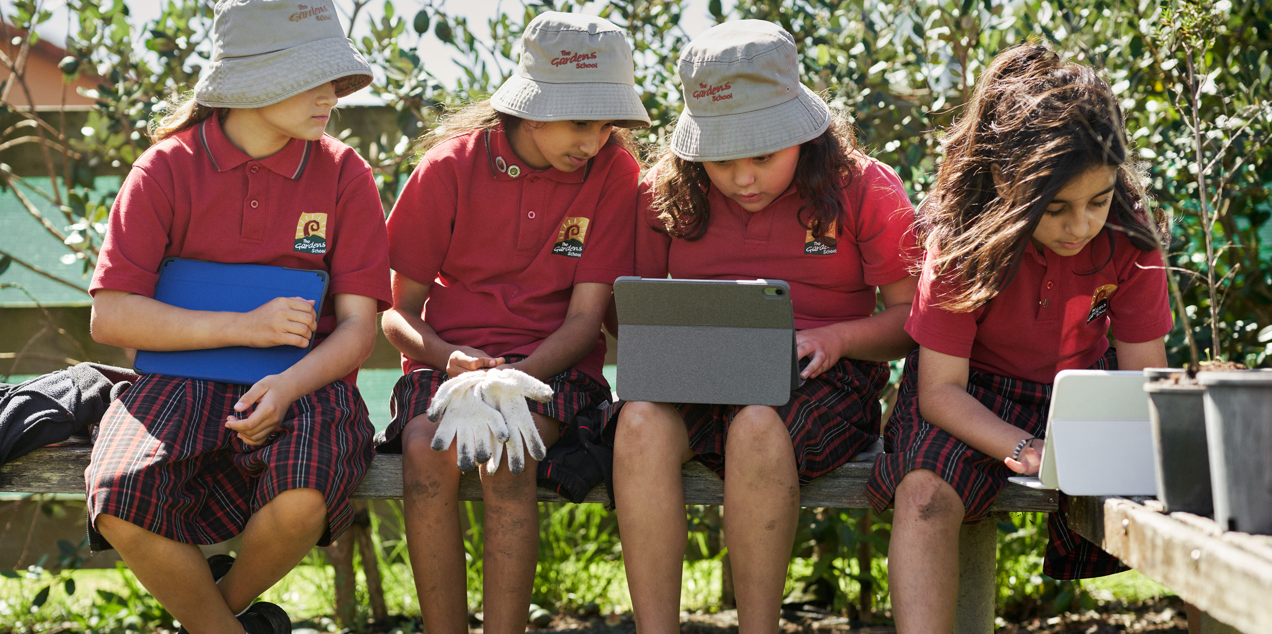 位於南奧克蘭的 The Gardens School 擁有由 568 名學生所組成的多元化學生社群,學校採取全方位兼顧的教學方式,將協作式學習和學生身心健康支援整合起來。該校由 Susannah Fowler 和 Kate Gifford 所帶領,擁有一支全女性領導層團隊,並在 2014 年率先推行了自攜 iPad 或 Mac 裝置計劃,以支援這種全方位教學方式。