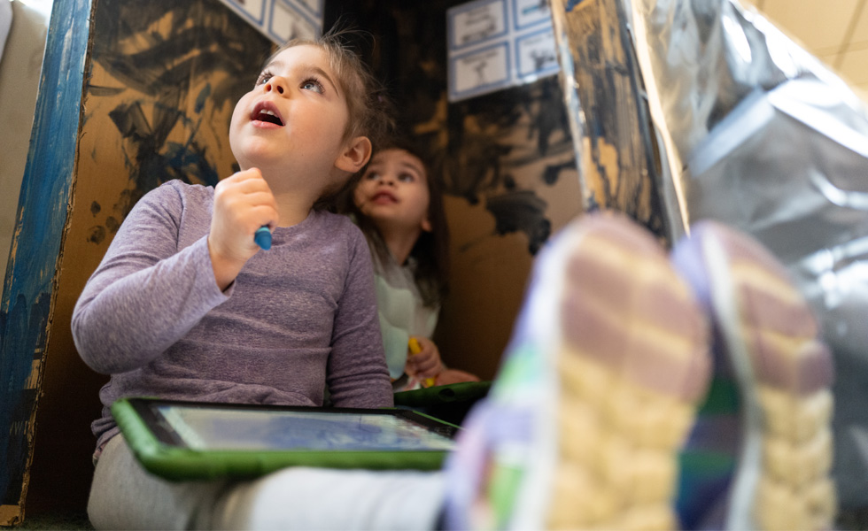 為 3 至 5 歲的兒童提供 iPad,看來超乎傳統,但 Stowe 的學生表現出色,令人難以置信。經過有關適當及安全使用裝置的介紹後,校區內最年幼的學生已學會如何表達自己、展示知識,並與同學分享。