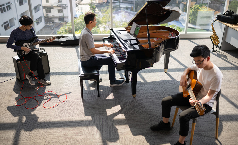 Despite a busy schedule, Phoom regularly prioritises playing and creating music with his friends. And during Covid lockdowns, when they had to to connect online, Phoom found an opportunity to intersect his two greatest interests. Disappointed by the lagging and poor audio quality of existing meeting apps, he developed an app using Xcode that enables musicians to play together remotely in a completely immersive and seamless way.