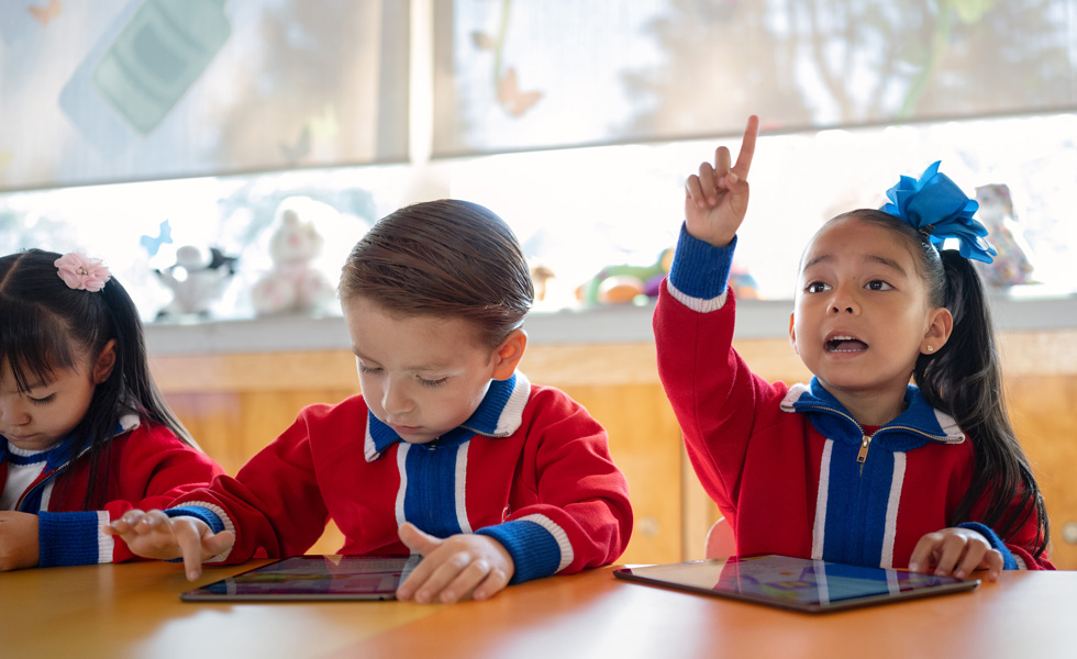 I più piccoli familiarizzano con iPad tramite app come Smile and Learn, che li aiuta a imparare a leggere e scrivere. “Sono curiosi di imparare”, racconta Liliana Pescador, insegnante di scuola dell’infanzia. “Appena entrano in classe afferrano il dispositivo, lo esplorano e lo portano con sé da un luogo all’altro. Vogliamo che usino questi strumenti fin dai primi anni. Chi ha appena iniziato a leggere e scrivere compone già brevi frasi su iPad.”