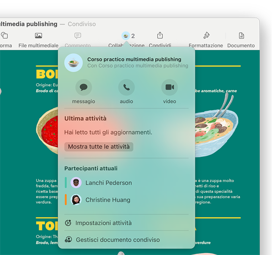 Collabora e condividi facilmente file, cartelle, documenti e altro ancora, ovunque ti trovi: ti basta inviare un link privato. Sei tu che controlli se chi lo riceve può solo visualizzare, o anche condividere e modificare i singoli file. E con gli aggiornamenti live, le modifiche appaiono in tempo reale.