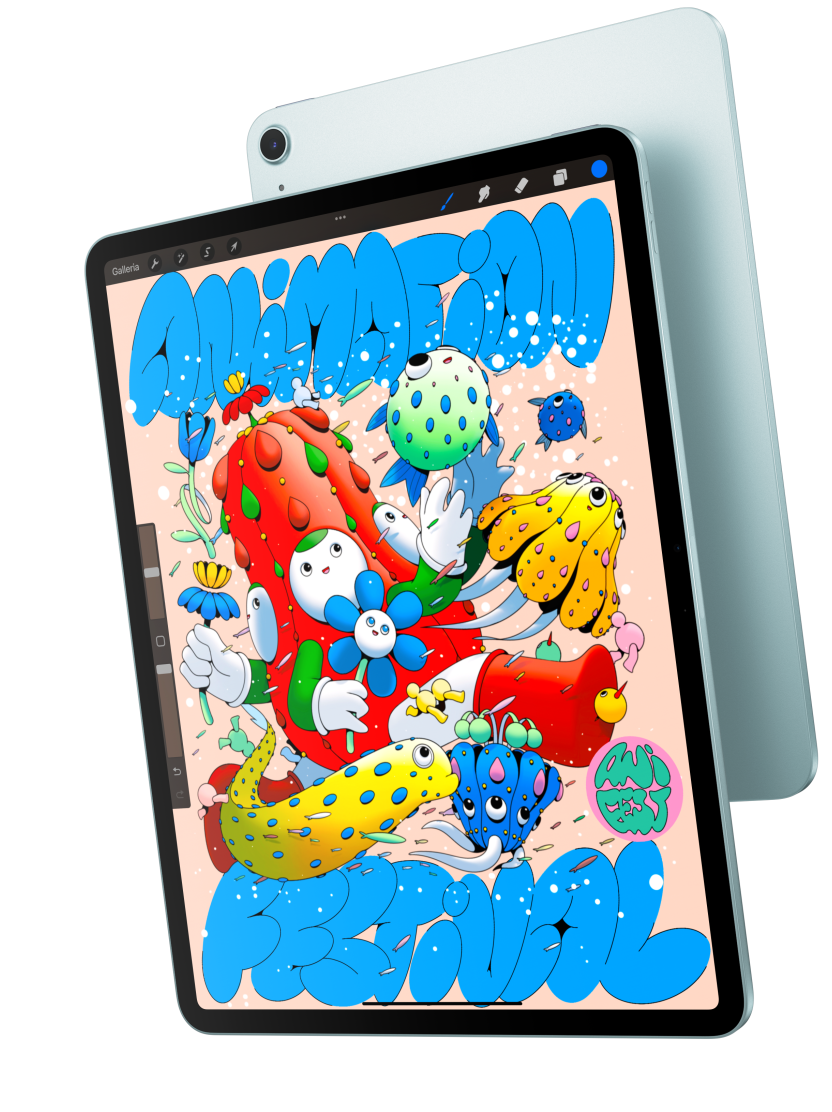 Puoi scegliere iPad Air nel formato da 11" o 13": hanno entrambi uno splendido display Liquid Retina ad alta risoluzione che rende spettacolare tutto quello che fai. E sono pronti ad aprirti un mondo fatto di immagini fluide e brillanti, e colori ultrafedeli.