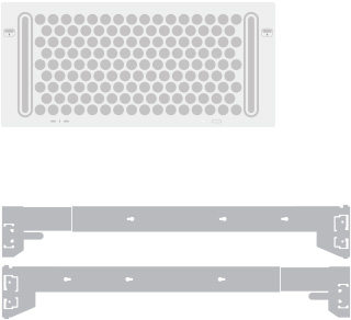 - Mac Pro tower enclosure with feet; configurable to tower with wheels