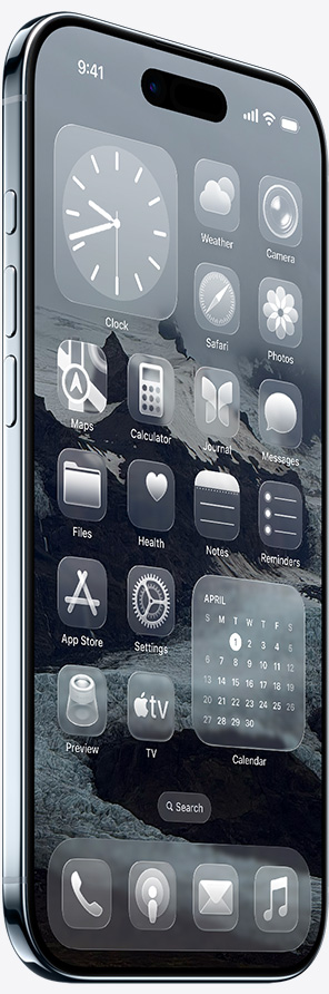 The new iOS design reflects and refracts what’s beneath it in real time, dynamically adapting to your content across apps and devices.