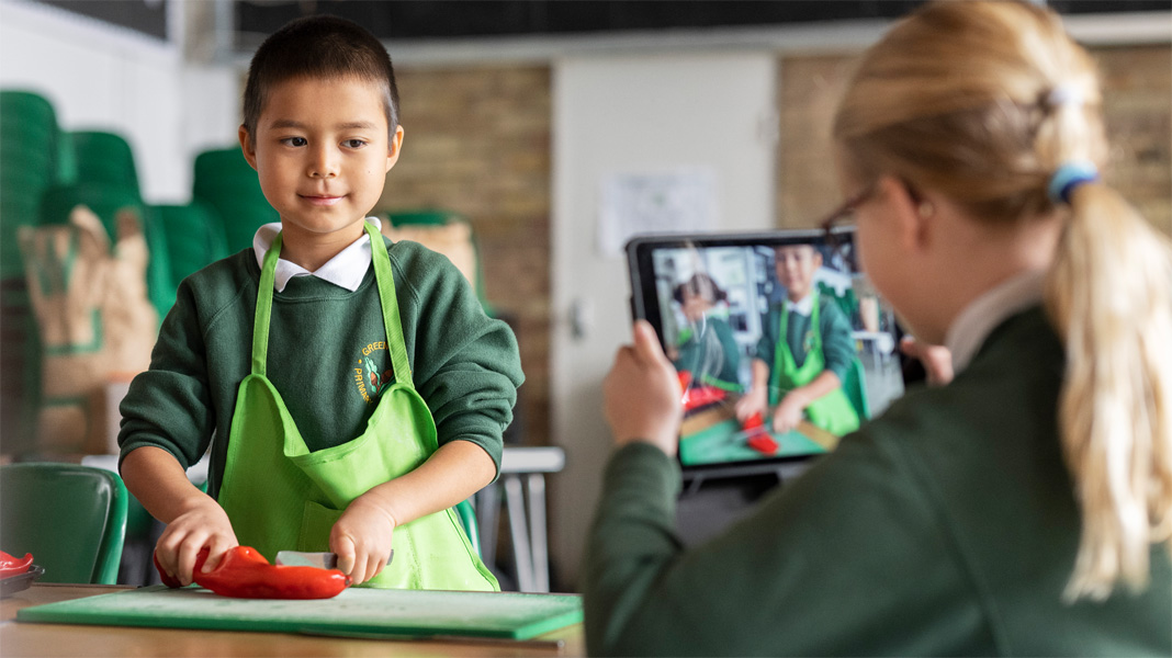 In the kitchen, students use Notes to follow recipes, iMovie to create how-to videos and Keynote to make nutrition labels. In the garden, to gain understanding of how to grow nutritionally rich produce, students test soil samples and record findings in Numbers. They even FaceTime with farmers across the UK to learn how they grow food in a sustainable way at scale.