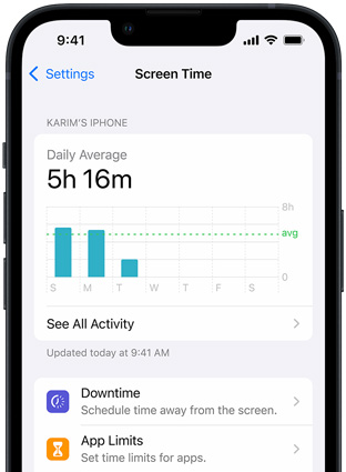 Screen Time gives you a better understanding of the time you and your kids spend using apps, visiting websites, and on your devices overall. You can get weekly reports or see specific app usage, notifications, and device pickups.