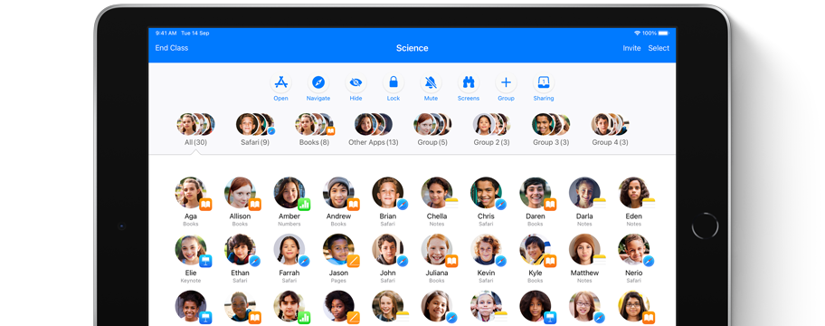 Our commitment to families doesn’t stop at your front door. Apple devices expand what’s possible in the classroom, and apps like Classroom and Schoolwork help teachers keep students on track. Educators have access to many of the same controls you do. And Apple doesn’t use your kids’ information to create a profile or market to them.