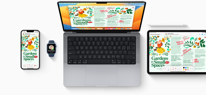 Our hardware and software are designed together. That integration is what enables amazing features like Center Stage, Spatial Audio, and “Hey Siri.” For pro workflows, macOS supports reference modes and fine-tune calibration so you can match industry standards — whether it’s HD and SD video or broader uses such as photography, web development, design, and print.